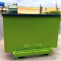 Contêiner Articulado para Empilhadeiras. Também conhecido por Caçamba Basculante. Seu principal objetivo é auxiliar no armazenamento, seleção e distribuição de materiais. Muito utilizado nos setores da Gestão de Resíduos Solidos e Liquidos .